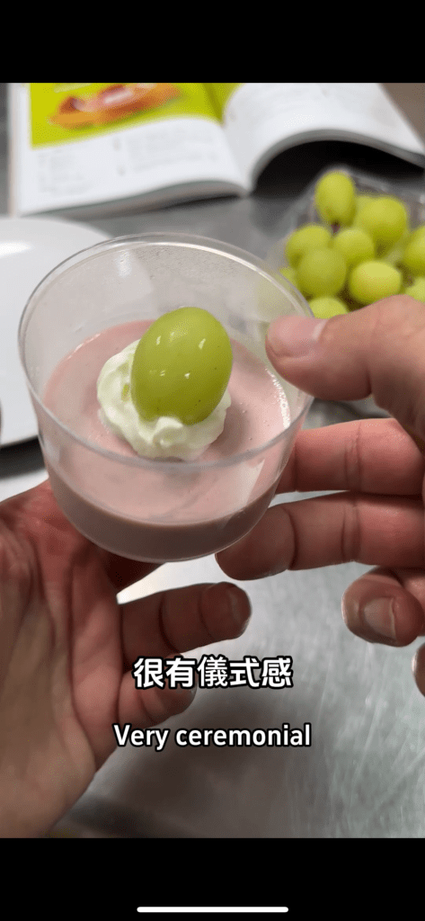 吃上一口後,這次的「意外創作」讓我非常驚喜!布丁的奶香與綠葡萄的清新酸甜完美結合,酸甜之間的平衡帶來了意想不到的美味。雖然少了草莓的濃郁果香,但綠葡萄的口感為整體增添了一種夏日的清爽感,甚至讓人忘記這原本是一場「翻車事故」。